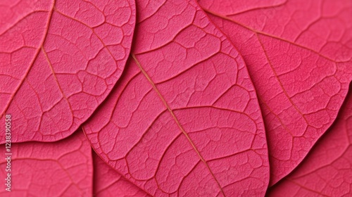 Close-Up of Vibrant Pink Leaves with Intricate Veins and Natural Texture in a Beautiful Symmetrical Arrangement