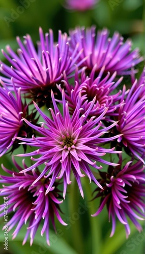 Close-up of vibrant purple burdock flower heads, spiky textures and intricate details, natural botanical beauty, rustic, wildflower, weed