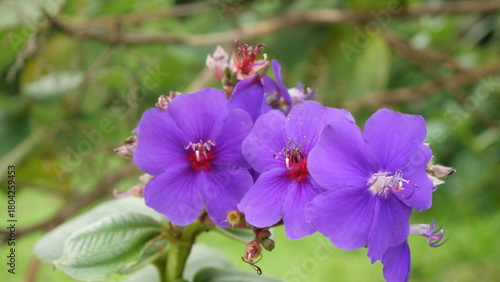Close-up of vibrant purple wildflowers in daylight, captured outdoors with shallow depth of field highlighting petals, stamens, and natural garden background
