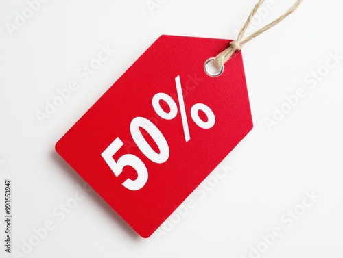 Close-up of vibrant red sale tags hanging in a row, AI generated