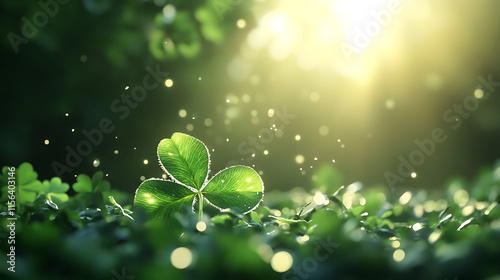 Close-up of vibrant shamrocks bathed in sunlight. This close-up captures the vibrant green of shamrocks bathed in warm sunlight.