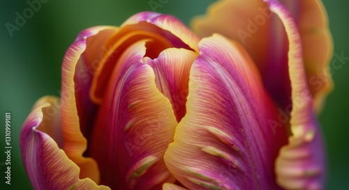 Close-up of Vibrant Tulip Flower with Swirling Petals and Soft Background