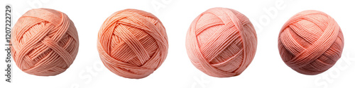 Closeup of vibrant yarn balls in soft pastel coral and peach ombre tones Skeins of handmade textiles and fibers for knitting crocheting and other DIY craft projects and hobbies
