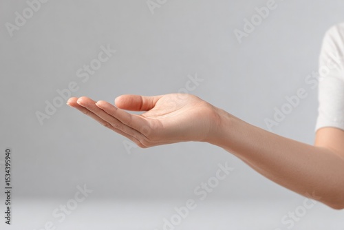 close-up of volunteer open hand reaching out to help minimalistic design with ample copy space promoting compassion