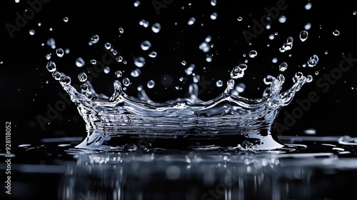 Close-Up of Water Droplets Splashing in Mid-Air on a Dark Background