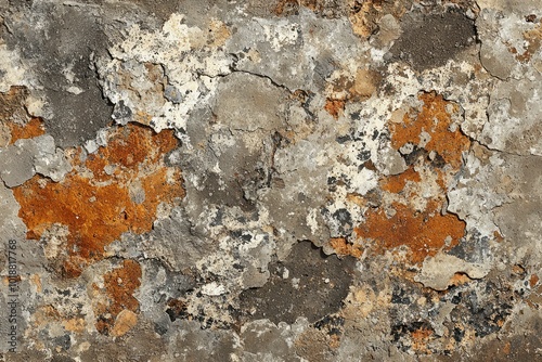 Close-Up of Weathered Concrete Wall with Flaking Paint and Rust