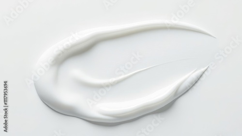 Close-up of white cream on the surface, smooth and glossy texture, white background