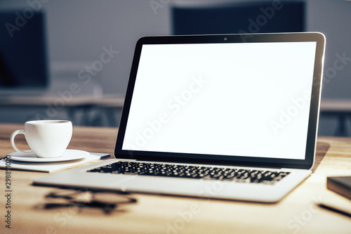 Closeup of white laptop on desktop