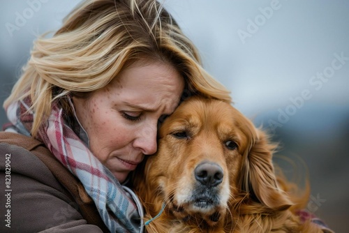 Closeup of woman tenderly petting dog with affection