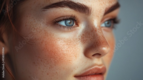 Closeup of Woman with Healthy Skin on Grey Background - Beauty and Skincare Concept