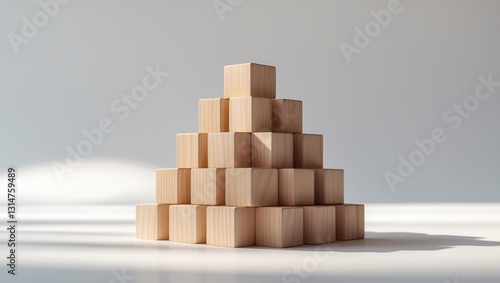 Close-up of wooden cubes formed in a pyramid configuration mock-up for designing symbols or logos, business growth, and management concept against a background.
