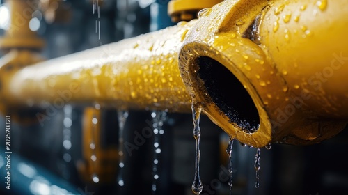 Close-Up of Yellow Oil and Gas Pump Activating Water in Industrial Factory – High-Contrast Lighting