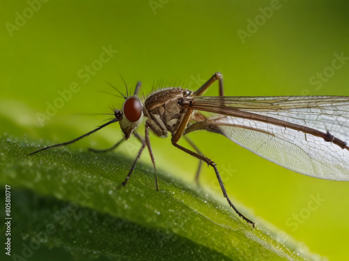 Closeup on a dance fly, Empis livida sitting on a green leaf