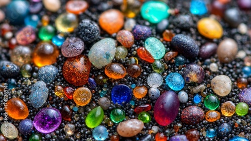 Close-up on micro plastic particles. The concept for water pollution and global warming. Macro shot on a bunch of microplastics that cannot be recycled.