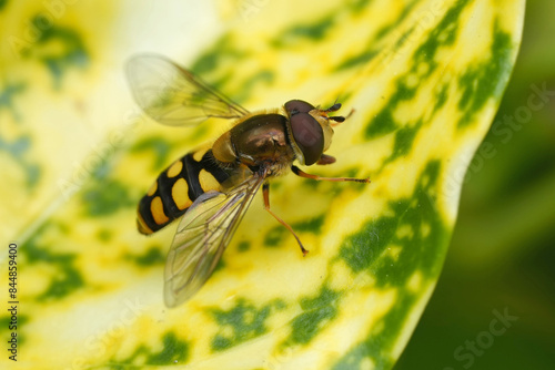 Closeup on the European common spotted hoverfly, Eupeodes luniger