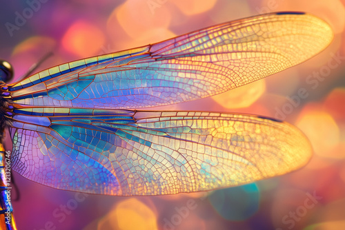 closeup photo of a dragonfly wing, bright shiny shimmering holographic backdrop