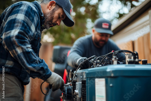 Close-up photo of an electrician carefully repairing wiring generative ai image