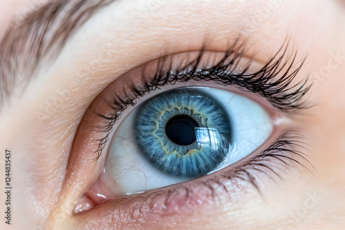 Close-up Photo of Blue Eye Reveals Intricate Iris Details and Long Eyelashes