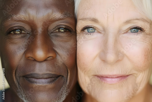 Close-up Photo of Two People's Faces Shows Diverse Skin Tones and Textures Closely
