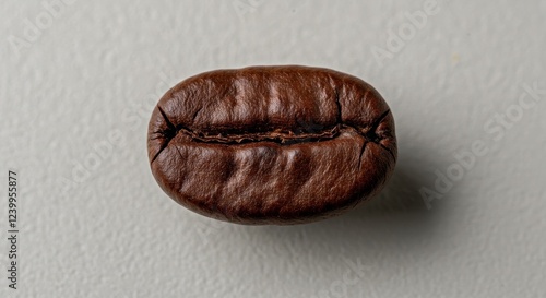 Close-Up Photograph of a Single Coffee Bean on a Neutral Background for Cafe Marketing and Design Use
