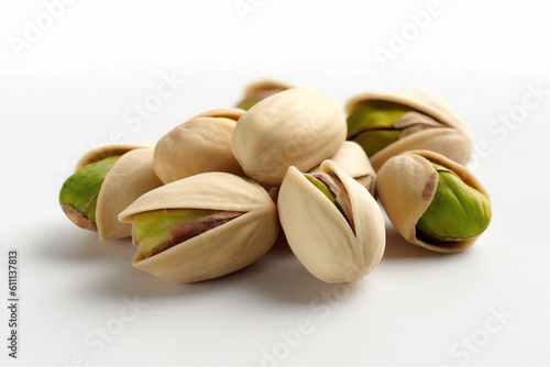 Close-up pistachios. Delicious ripe pistachios. Peanuts on a white background.