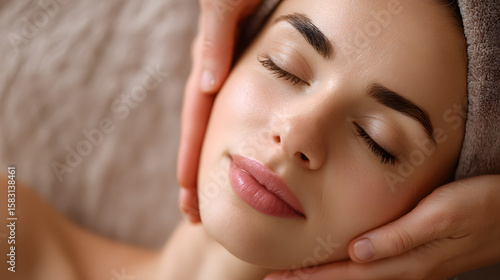 Close-Up Portrait of a Beautiful Young Woman Enjoying a Relaxing Facial Treatment in a Spa Setting