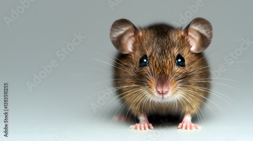 Closeup Portrait of a Cute Mouse with Detailed Whiskers and Bright Eyes on a Clean Background