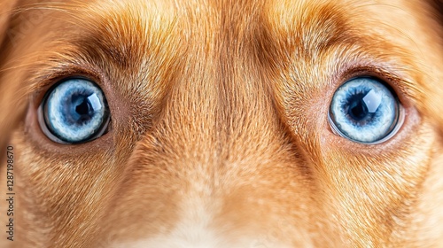 Close-up portrait of a dog with striking blue eyes isolated on white background animal photography studio setting