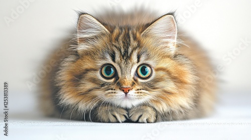 Close-Up Portrait of a Fluffy Young Cat with Striking Blue Eyes Gazing Curiously at the Camera
