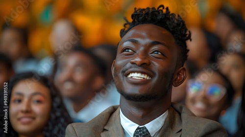 Close-up portrait of a handsome African American man with a warm smile, looking directly at the camera