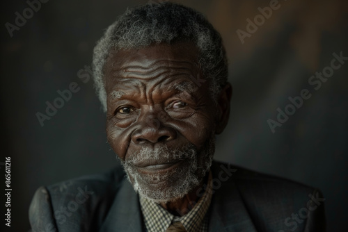 Close-up portrait of a senior man of African descent, studio photo, against a sleek gray studio backdrop