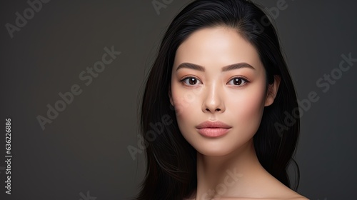 closeup portrait of a young asian woman with a studio background - mockup template for skincare/beauty products/ads (generative AI)
