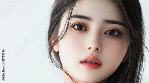 Close-Up Portrait Of A Young Woman With Beautiful Eyes And Soft Skin, Capturing Her Natural Beauty And Subtle Makeup.