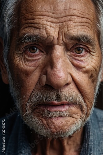 Close-up portrait of an elderly man, showcasing the texture of his weathered face and the depth of his expression.
