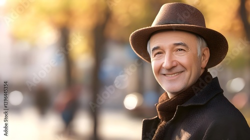 Closeup Portrait of Elderly Man Wearing Warm Hat and Scarf Outdoors