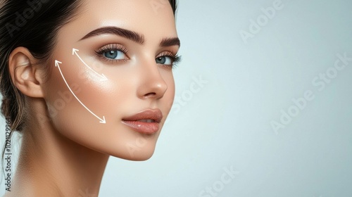Closeup Portrait of Flawless Makeup and Glowing Skin on Beautiful Young Woman Face