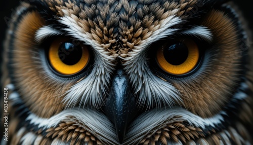 Close-up Portrait of Majestic Owl with Striking Yellow Eyes