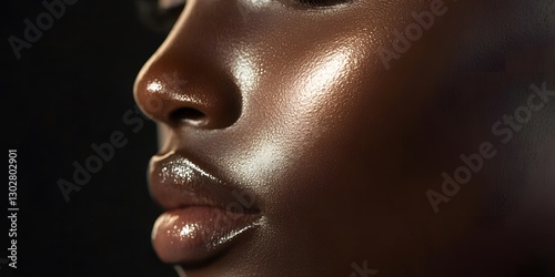 Close-up Portrait of Radiant Dark Skin Beauty with Glossy Lips