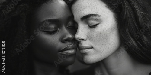 Close-up portrait of two women sharing an affectionate kiss
