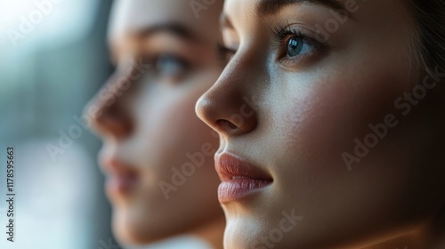 Close-up Portrait of Two Young Women with Soft Skin and Serene Expressions
