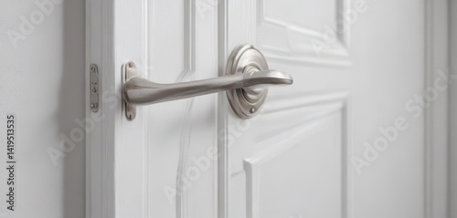 Close-up, pristine white door; stylish handle , home staging, modern home