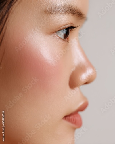 Close-up profile of a young woman with glowing skin against a neutral background highlighting her natural beauty
