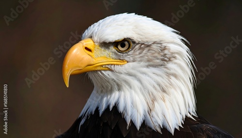 Close-up profile view of an American bald eagle. Sharp focus on head and neck