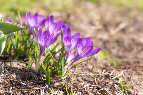 Close-Up Saffron Crocuses in the garden Spring 2021