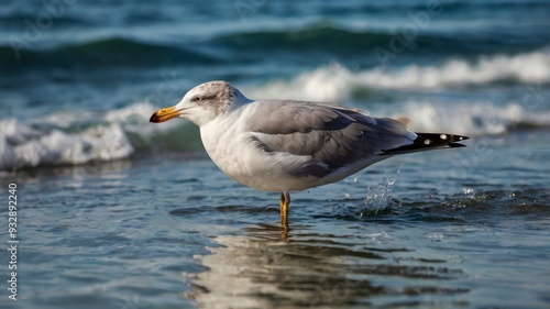 Closeup seagull on ocean water