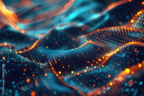Close-up shot of a bright blue and orange background pattern