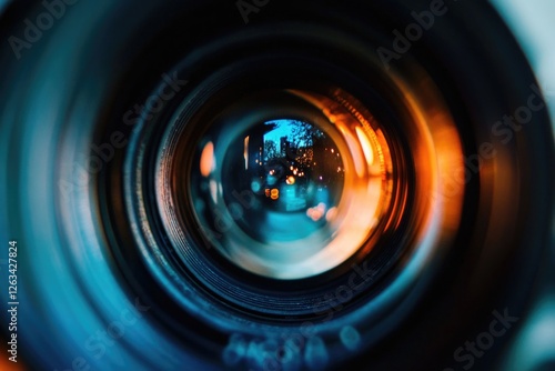 Close-up shot of a camera lens showing its details and texture