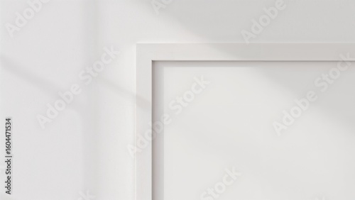Close-up shot of a display poster frame against a softly painted white and pink wall