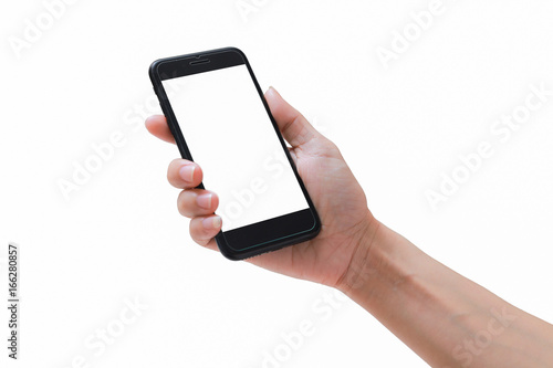 Closeup shot of a woman holding on mobile phone. with clipping path