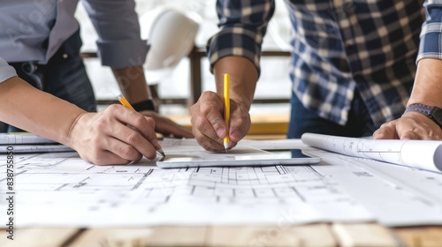 Closeup shot of architects meeting construction plans.